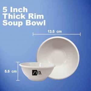 This set of porcelain 5″ Thick Rim Soup Bowls from MyMug Malaysia brings classic style and minimalist sophistication to any home, kitchen, dining table or restaurant. Crafted from food safe white porcelain clay that can last for years. These ceramic wares have been fully vitrified against the absorption of strong colours and flavours, making them the perfect serving tableware solution for professional kitchens or in your home. These bowls are stackable to save space and they are fully microwave and dishwasher safe.