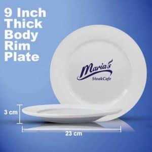 This set of porcelain 9″ Thick Rim plates from MyMug Malaysia brings classic style and minimalist sophistication to any home, kitchen, dining table or restaurant. Crafted from food safe white porcelain clay that can last for years. These ceramic wares have been fully vitrified against the absorption of strong colours and flavours, making them the perfect serving tableware solution for professional kitchens or in your home. These plates are stackable to save space and they are fully microwave and dishwasher safe.