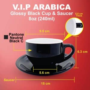 V.I.P. ARABICA Glossy Black Cup & Saucer 240ml/ 8oz