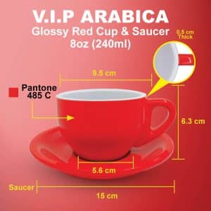 V.I.P. ARABICA Glossy Red Cup & Saucer 240ml/ 8oz